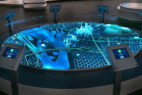 交互功能:參觀者可以通過觸摸屏選擇不同的規(guī)劃方案,查看其對城市的影響。